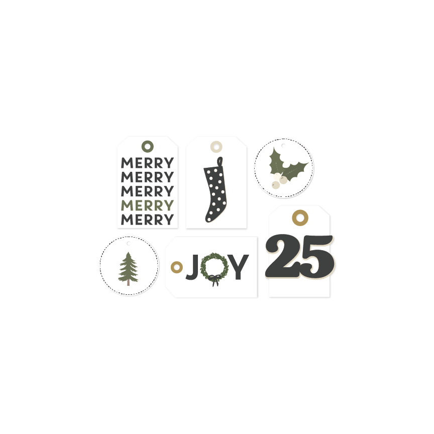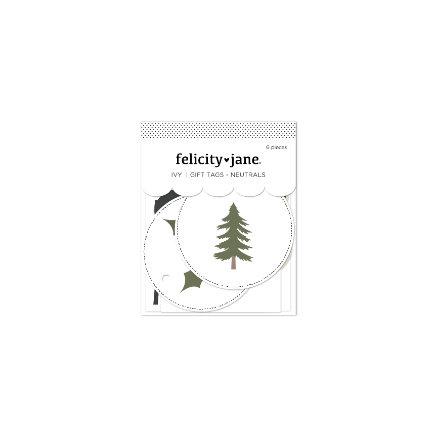 Set of 6 large cardstock gift tags, perfect for your Christmas album or gift wrapping! Coordinates perfectly with the Ivy card set - neutrals